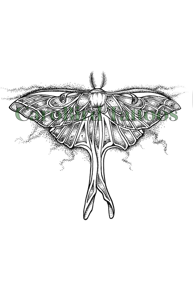Luna Moth Tattoo Design Digital Print Etsy Uk