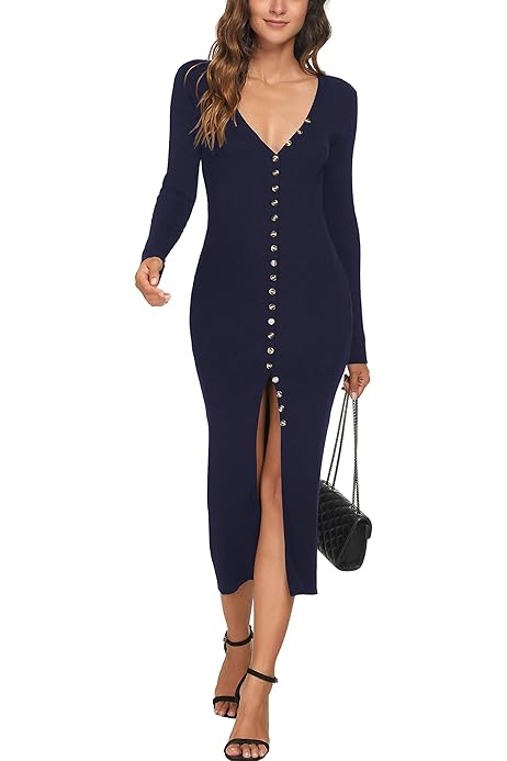 Cmz2005 Women S Long Sleeve Cardigan Maxi Dress Fall Knit Bodycon Dress Button Down Sweater Dress 6088 Xx Small Black At Amazon Women S Clothing Store